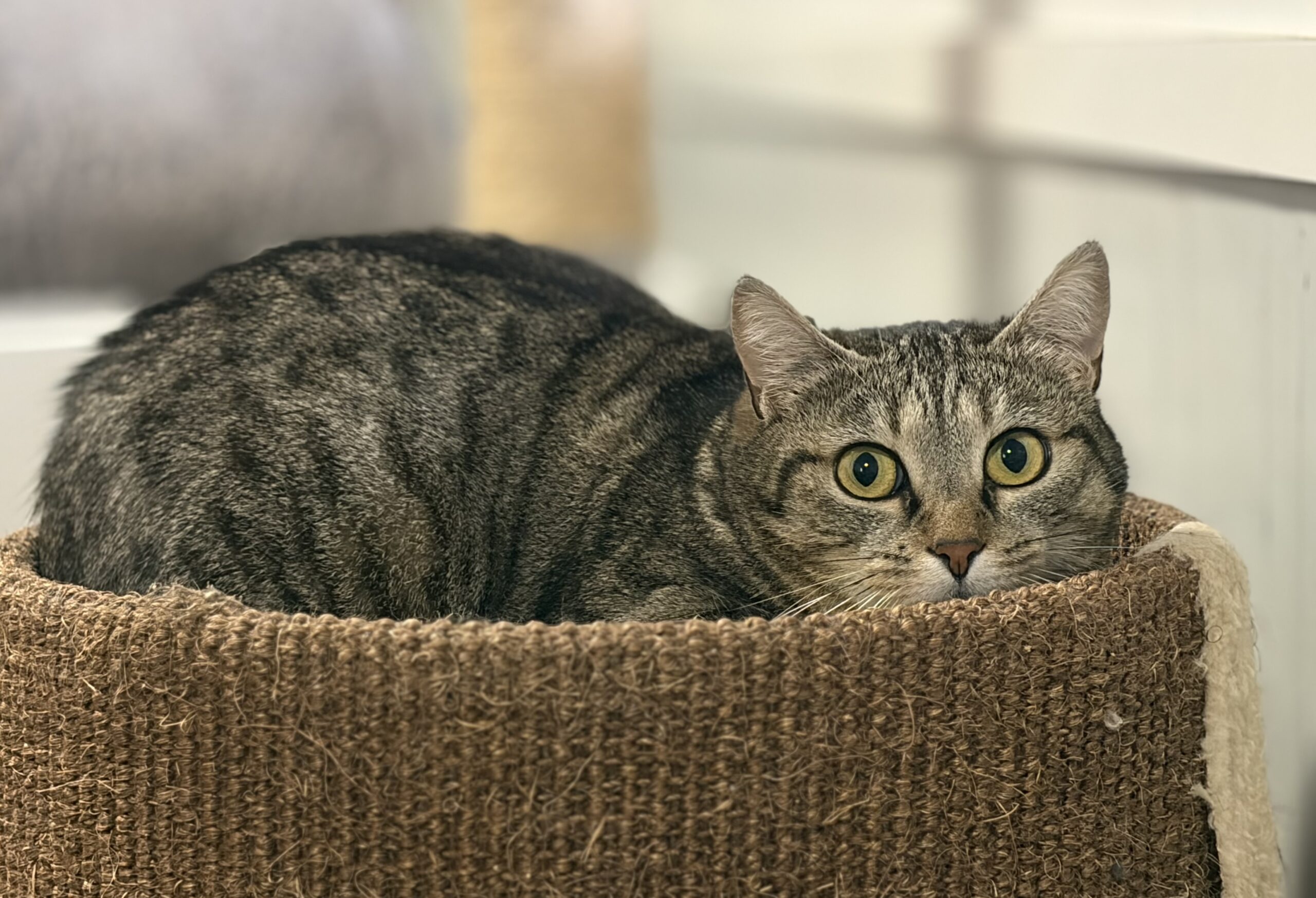 Ce n’est pas une chatte méchante, simplement très peureuse. Elle aura besoin d’une famille patiente, douce et habituée aux chats timides, prête à lui laisser le temps dont elle a besoin pour s’ouvrir et prendre confiance.